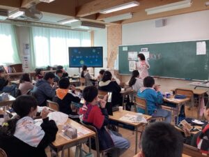 授業では、カラーテスターを使って歯の磨き残しを確認し、自分の歯肉の状態を観察しました。その後、子どもたちは歯ブラシの力加減に気をつけながら、前歯や奥歯、歯と歯の間を丁寧に磨く練習も行いました。また、歯肉炎が進むと歯を支える部分が弱くなることを知り、子どもたちはとても驚いていました。