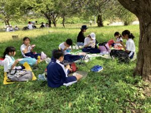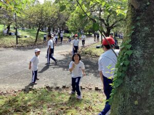 低学年にとっては,お弁当と水筒をもって8㎞の距離を歩くことは大変だったと思いまが,最後まで歩き抜きました!途中,中・高学年が荷物を持ってあげたり,「大丈夫?休憩にしようか!」と低学年を気遣ったりする姿もあり,それぞれの成長が見られました。 安全に楽しく「スマイルウォーク」を実施できたのは、ご多用の中、ご参加いただいたたくさんのボランティアの皆さん,そして,励ましの声掛けやお弁当等の準備をしてくださった保護者の皆様のおかげです。ありがとうございました。